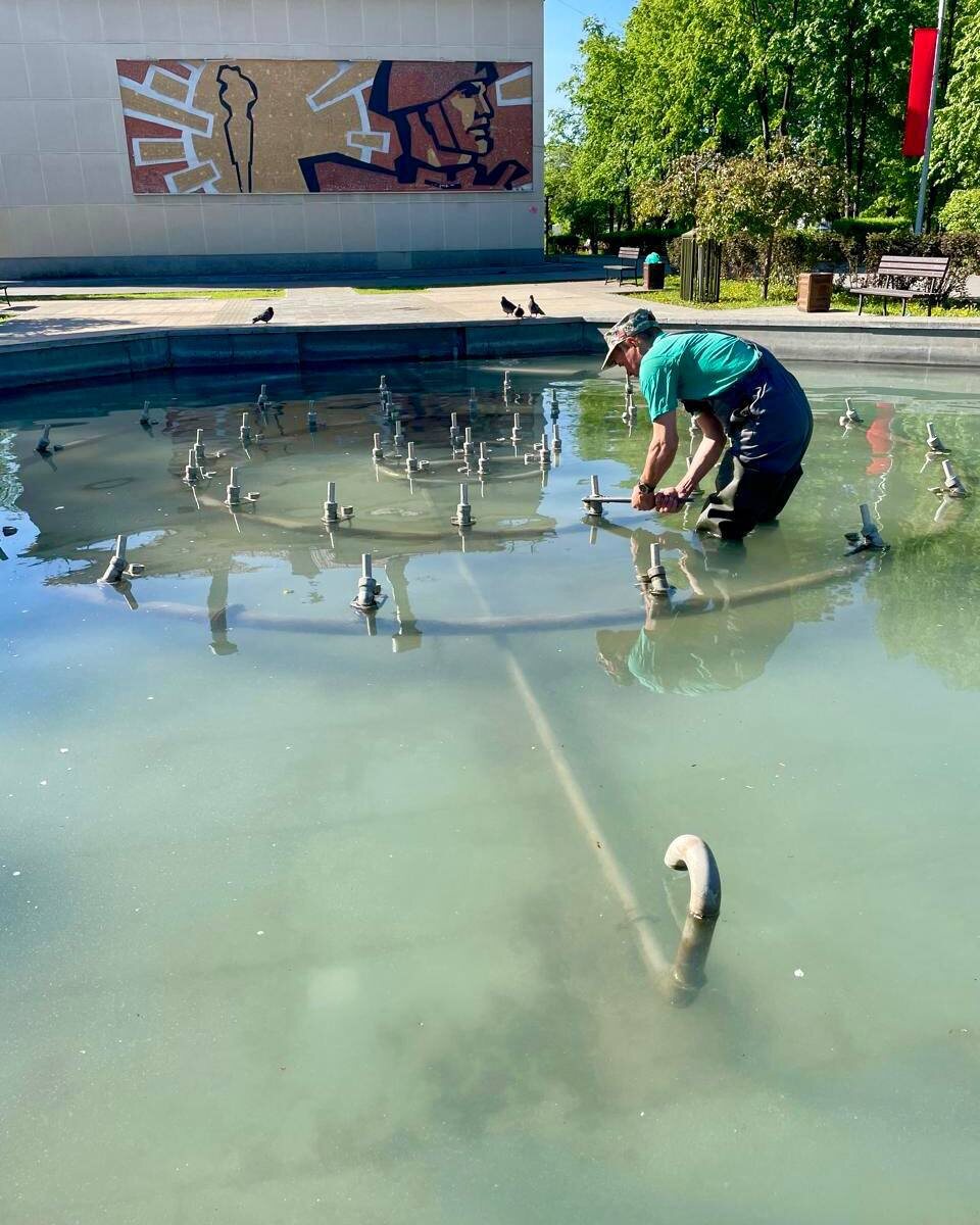 Чтобы фонтан в парке Победы работал красиво и исправно, сегодня "Парки" проводят его техобслуживание, а именно — чистка форсунок. От их состояния зависит, насколько ровной и красивой будет струя. Чистка форсунок от пыли, песка, листьев и мелкого мусора это профилактика поломок в будущем. @zg66
