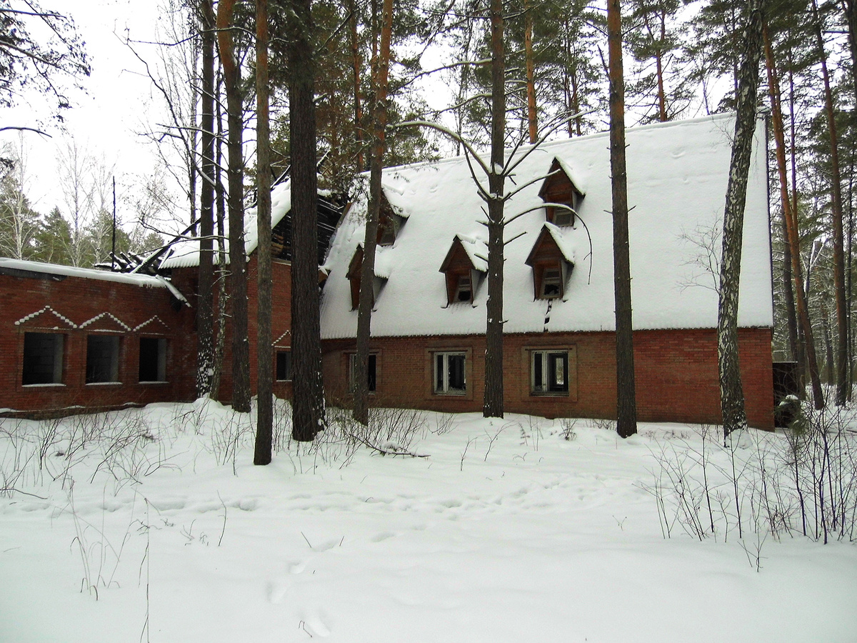 Осенью 2024 года я узнал об очередном заброшенном лагере с не совсем обычной историей. Поездку было решено отложить до лета следующего года, но на новогодних праздниках я всё-таки не дотерпел и отправился навстречу приключениям... Добравшись до необычного и довольно симпатичного на вид здания, я остановился, чтобы передохнуть. Не совсем верно определив расположение лагеря, я устроил себе увлекательный квест с путешествием по глубокому снегу через лес, без которого запросто можно было бы обойтись. Так чем же необычен этот лагерь? Ещё в 1993 году концерн «Запсибзолото» продал ДОЛ «Дружные ребята» православной религиозной организации. Новым собственником лагеря стал «Приход храма в честь всех святых, в земле Русской просиявших», относящийся к новосибирской епархии РПЦ. Насколько я понимаю, с этого момента лагерь продолжил работу уже с православным уклоном. Внутри дома ожидала довольно печальная картина. Не пострадавшие от огня комнаты пусты, весь металл давно украли, словом, показывать ос
