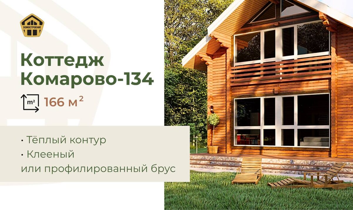 🌲 Хотите жить за городом круглый год? Коттедж «Комарово-134» — идеален для этой цели;) Неспешное утро с кофе на террасе, приятное тепло деревянного пола под босыми ногами, семейные вечера в гостиной у камина. Здесь тепло и уютно. ▪️ Общая площадь двухэтажного дома — 166 м². Для вас — большая гостиная с камином и кухней, 4 спальни с балконами, 2 с/у, кладовая и изумительная терраса в 41.9 м², где можно принимать гостей, играть с детьми или просто лежать в гамаке и слушать дождь. ✔️ Мы строим «Комарово-134» из бруса — клееного или профилированного. Он «дышит», держит форму, не боится влаги и дарит дому тёпло. ✔️ Дом стоит на крепком железобетонном фундаменте, утеплён по всем стандартам (в том числе — утепление крыши 250 мм), с качественными окнами Rehau. ▪️ Цена тёплого контура: • Из профилированного бруса — от 6,2 млн ₽ • Из клееного бруса — от 8,5 млн ₽ Доступна ипотека, в том числе — льготная семейная. Принимаются жилищные сертификаты и мат.кап. Дом начинается с мечты. ✉️ Нап