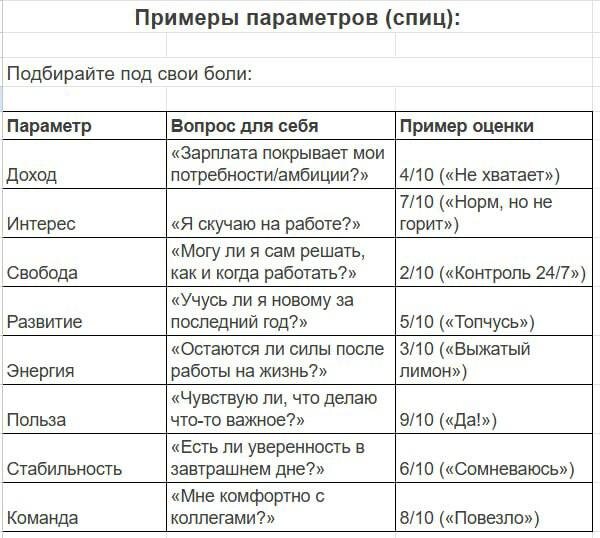 Мое любимое КОЛЕСО БАЛАНСА, адаптируем под карьеру Представьте свою карьеру как велосипедное колесо с 8–10 «спицами». Каждая спица — ключевая сфера вашей профессиональной жизни. Если хоть одна сломана или короче других — колесо кривое, ехать будет тяжело. Цель: Найти эти «слабые спицы» и починить их. 🔧 Коротко напомню про то, как это работает? Выберите 5–8 параметров (то, что важно лично вам). Оцените каждый по шкале от 1 до 10 (где 1 — «полный провал», 10 — «идеал»). Соедините точки — увидите «колесо». Анализируйте дисбаланс — где самые низкие оценки? 🚀 Как это помогает строить карьеру? ✅ Шаг 1: Диагностика Пример: У Алёны колесо «кособоко»: Доход (2), Энергия (3), но Польза (9). Вывод: Она готова терпеть низкую ЗП ради смысла, но выгорает. ✅ Шаг 2: Ставьте цели Фокус на слабых «спицах»: «Поднять Энергию с 3 → 7 за 3 месяца. Как? — Уйти с переговоров после 19:00, — Делегировать рутину». ✅ Шаг 3: Принимайте решения Критерий для смены работы: «Если в новой работе параметр «Сво