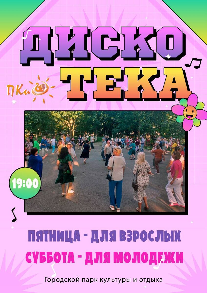 Привет, друзья! 🪩 Готовы танцевать ? С июня мы запускаем наши долгожданные дискотеки ✨ Приглашаем вас на танцпол каждую пятницу и субботу в 19:00! 🕺 Пятница - время для тех, кто молод душой! Приглашаем старшее поколение на дискотеку, где можно вспомнить любимые хиты и отлично провести время. 💃 Суббота - отрываемся вместе с молодежью! Самые свежие треки и зажигательная атмосфера ждут вас. Не пропустите!🔥