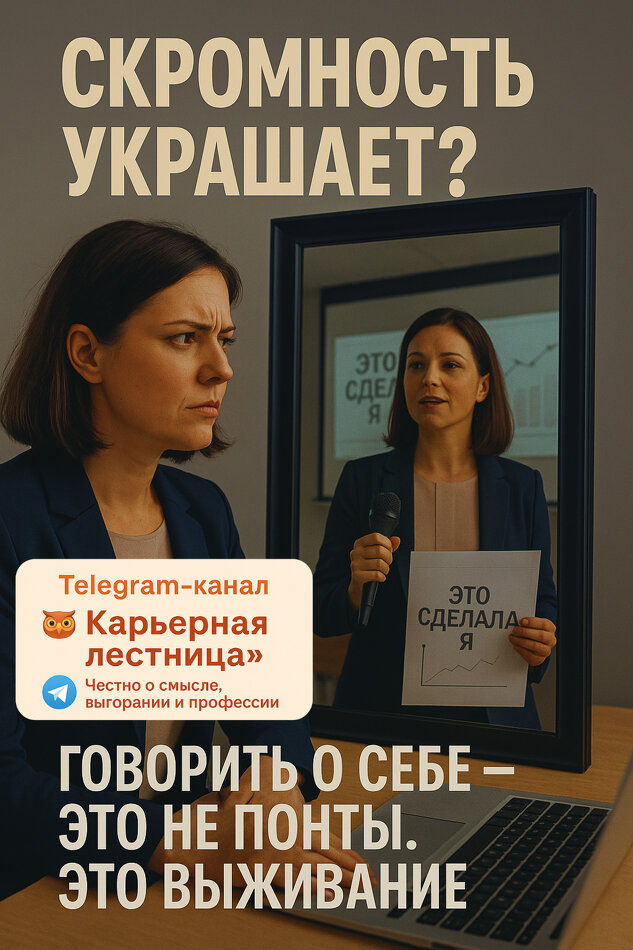 – «Мне это неловко» – «Не люблю хвастаться» – «Хочется, чтобы говорили дела» А знаешь, откуда это? Из детства. Из той самой установки: — Скромность украшает — Инициатива наказуема — Хорошая девочка не мешает и не лезет 🙃 Мы выросли в этом. Но в карьере это фон, на котором никто не услышит твой голос. Ты дома с ребёнком. Муж приходит с работы. Тишина. Порядок. Ужин. Спящий малыш. Он подумает: «Хорошо. Всё нормально.» А теперь ты ему говоришь: — Я трижды убирала, потому что наш устроил фуд-арт по всей квартире — Я искала лекар