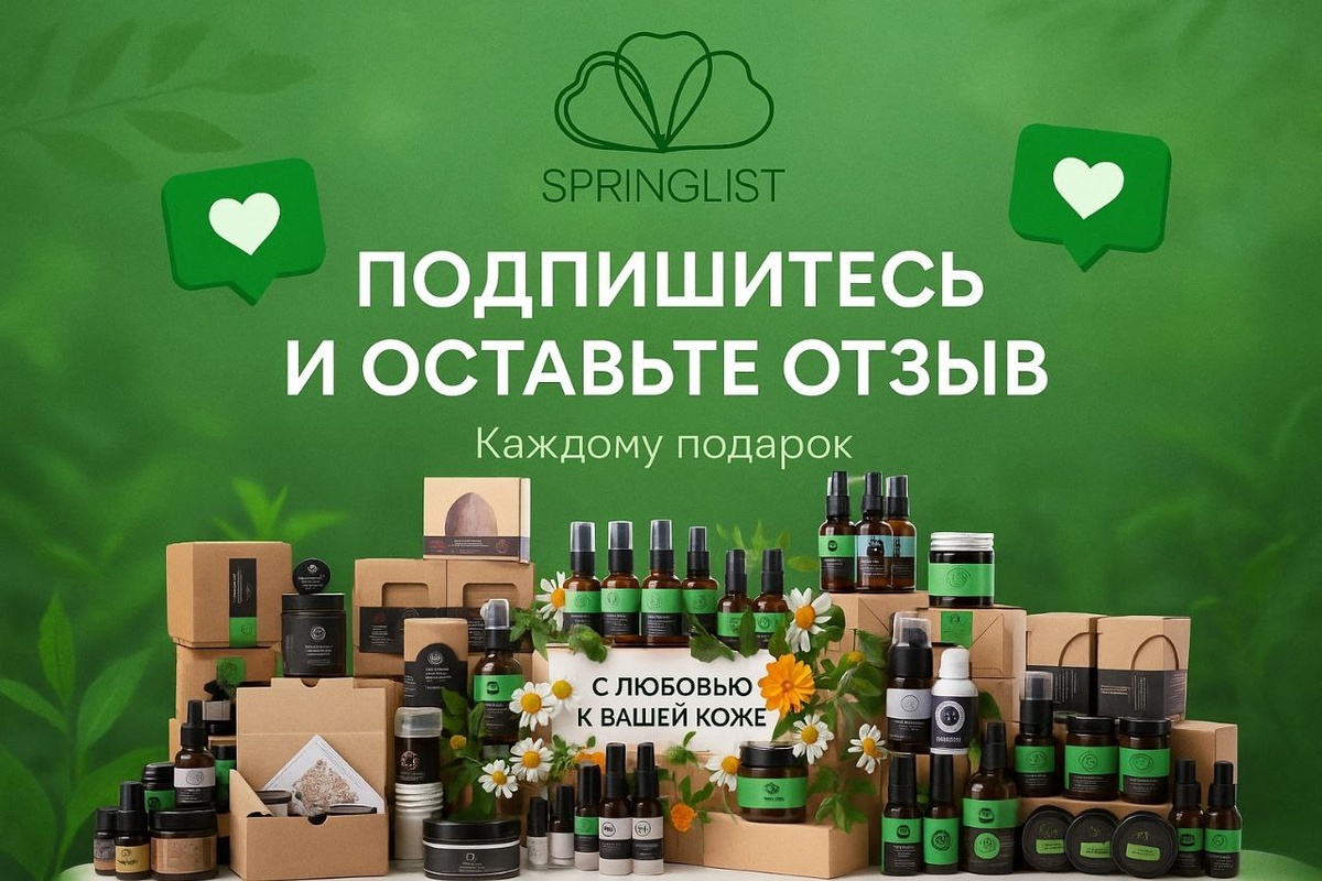 🎁 Дарим подарки за вашу любовь к Springlist! 🌿 Если вы пользуетесь нашей косметикой и хотите получить гарантированный подарок — делаем так: 1⃣ Подпишитесь на нашу страницу 2⃣ Оставьте честный отзыв о нашем продукте у себя на странице (отметьте нас в тексте или фото) 3⃣ Напишите нам в личные сообщения — и мы отправим вам ваш подарок 🎉 💚 Каждое ваше слово важно для нас. Мы растём и развиваемся благодаря вашей поддержке, и нам хочется сказать спасибо! Не упустите возможность сделать свой уход ещё приятнее 🌿✨ --- 📲 Подписывайтесь, оставляйте отзывы и получайте подарки 🎁 #Springlist #натуральнаякосметика #уходзакожей #уходоваякосметика #бьютигид #бьютиблог #красотавдеталях #бьютиуход #отзывыкосметика #уходдлялица #уходдлятела #натуральныйуход #подарокзаотзыв #уходоваярутина #чистаякрасота