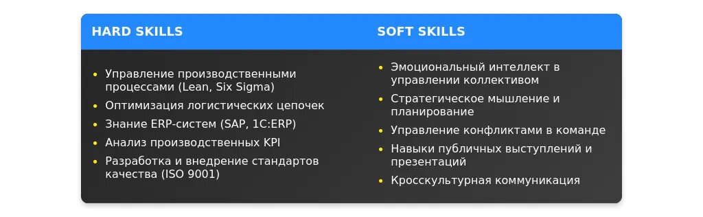 После адаптации: "Управление производственными процессами, внедрение Lean Manufacturing, знание ERP-систем, английский язык Upper-Intermediate."