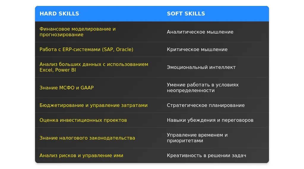 После адаптации: "Навыки межфункционального взаимодействия и презентации финансовых данных руководству."