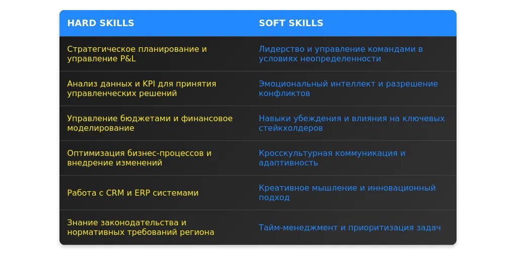 После адаптации: "Управление командами до 100 человек, знание CRM-систем (Salesforce, Bitrix24), стратегическое планирование."