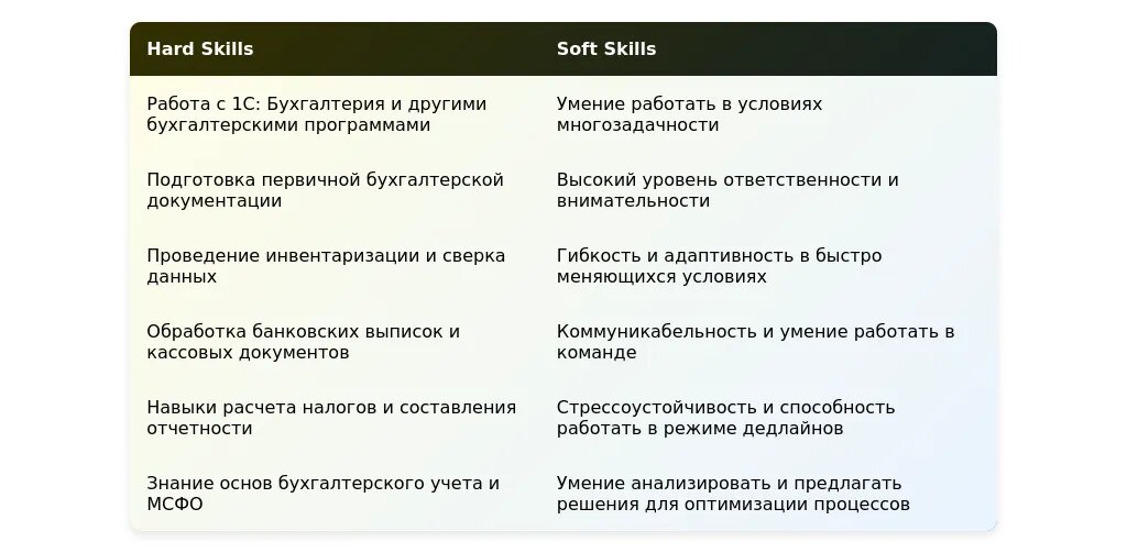 При анализе вакансии важно выделить ключевые требования, которые работодатель считает обязательными. Это могут быть навыки работы с бухгалтерскими программами (например, 1С), знание налогового законодательства, опыт ведения первичной документации. Обратите внимание на формулировки: если в описании указано "обязательно" или "требуется", это критично для успешного отклика. Желательные требования, такие как знание иностранного языка или опыт работы в международных компаниях, тоже важны, но их отсутствие не всегда является препятствием.