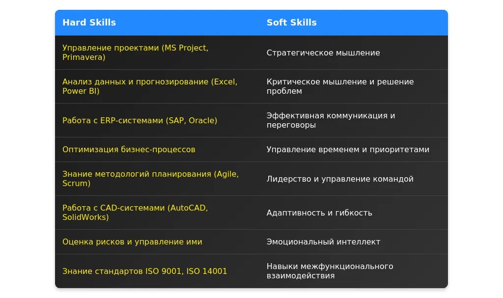 Используйте ключевые слова, которые отражают ваши навыки и специализацию: планирование, проекты, контроль, управление, анализ, оптимизация, ресурсы, сроки, бюджеты.