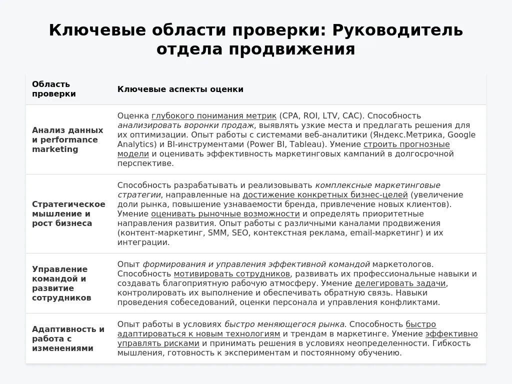 Ключевой момент: Успешный кандидат должен продемонстрировать глубокое понимание digital-маркетинга и умение применять его на практике.
