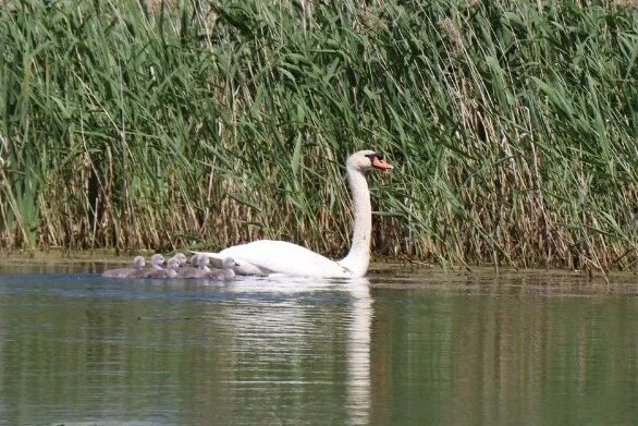 В селе Коптево Рассказовского округа местные жители наблюдают за лебединым семейством. Пара птиц, среди которых самец по имени Гриша, уже второй год подряд выбирает местный водоём для выведения потомства. В этом году у них появилось семь птенцов. Об этом сообщает издание «Тамбовская жизнь». Наблюдать за пернатой семьёй стало удобнее благодаря новому мостику, построенному на запруде реки Нару-Тамбов. Со смотровой площадки открывается хороший обзор водоёма, позволяющий рассмотреть лебедей вблизи. В прошлом году Гриша и его подруга впервые остались в Коптево во время сезонной миграции. Тогда у них тоже было потомство, но не все птенцы выжили - осенью на юг улетело четыре птицы. Вернувшись этой весной, взрослые лебеди вскоре отпустили подросших детей и занялись обустройством нового гнезда. Как отмечают сельчане, птицы хорошо освоились в этих местах и стали местной достопримечательностью.