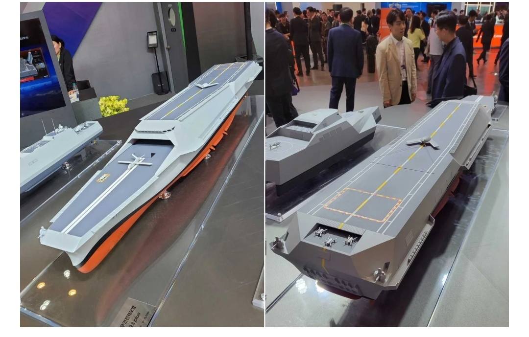 На выставке военно-морской обороны MADEX 2025, которая проходит в Пусане, Южная Корея, с 28 по 31 мая 2025 года, HD Hyundai Heavy Industries (HD HHI) представила HCX-23 Plus, революционную концепцию военно-морской платформы следующего поколения. Презентация этого гибридного беспилотного носителя подчеркивает стратегический поворот Южной Кореи в сторону автономных морских операций и интеграции передовых беспилотных систем, поскольку страна пересматривает структуру своих военно-морских сил в свете задержек в своей традиционной программе авианосцев CVX HCX-23 Plus является самым амбициозным проектом в серии HD HHI HCX. В отличие от обычных авианосцев, это судно оптимизировано для беспилотных и поддерживаемых ИИ операций. Благодаря яркому угловатому силуэту и геометрии, повышающей скрытность, HCX-23 Plus полностью устраняет традиционную островную надстройку, вместо этого используя размещенный внутри, управляемый ИИ комплект команд и управления. Гладкая палуба судна простирается по всей дл