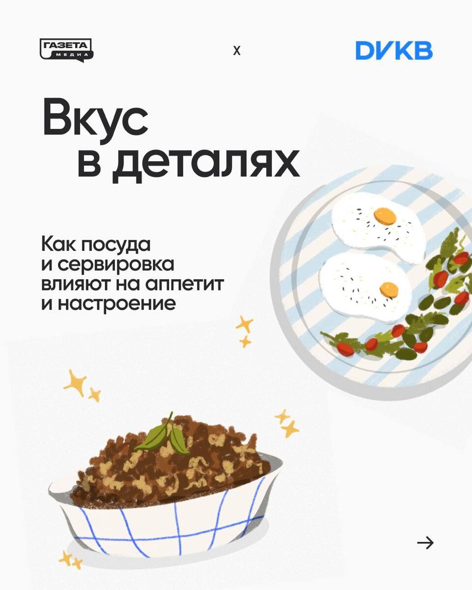 Психология тарелки: как визуал управляет нашим вкусом Задумывались ли вы, почему блюда в ресторанах выглядят как произведения искусства? Дело не только в мастерстве поваров: прежде чем попробовать еду, мы ее разглядываем. Наш мозг за доли секунды анализирует цвет, композицию, текстуру и даже выбор тарелки — и уже на основе этого формирует ожидания от вкуса. В книге «Гастрофизика. Новая наука о питании» Чарльз Спенс пишет: «Более половины мозга вовлечено в переработку того, что мы видим, и только примерно 1% отвечает за восприятие вкуса». Также считают и психологи: Наш мозг устроен так, что реагирует не только на вкус, а на весь контекст. Цвет, вес, звук, даже материал, из которого сделана чашка — все это становится частью эмоционального опыта. Это не излишества, а язык заботы, который мы часто забываем использовать по отношению к себе. Совместно с командой Дома Высокой Культуры Быта (ДВКБ), которая создает вещи с характером на стыке дизайна, искусства и производства, редакция «Газе