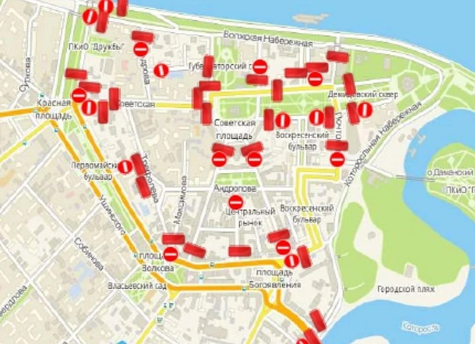 Центральные улицы Ярославля закроют для проезда в День города: схемы Ограничения будут действовать с 19:00 30 мая до полуночи 31 мая на верхнем и нижнем ярусах Волжской и Которосльной набережных, на участке Московского проспекта, на улицах Первомайской, Нахимсона, Кирова, Андропова, Почтовой, Кедрова, Волкова, Советской, Андропова, Трефолева, Максимова, а также на площади Челюскинцев и Советской площади, Волжском спуске, Советском и Народном переулках. Запрет на остановку и стоянку машин будет действовать 31 мая с 5 утра до 24:00 на участках улиц: Волжская и Которосльная набережные, Московский проспект, Первомайская, Нахимсона, Кирова, Андропова, площадь Челюскинцев, Почтовая, Волжский спуск, Революционная, Советский переулок, Народный переулок, Кедрова, Волкова, Советская, Советская площадь, Андропова, Трефолева, Максимова, Красный съезд, Красная площадь, Суркова, Флотская, Терешкова, проспект Октября, Некрасова, Свердлова, Пушкина, Свободы, Большая Октябрьская, Республиканская, Мук