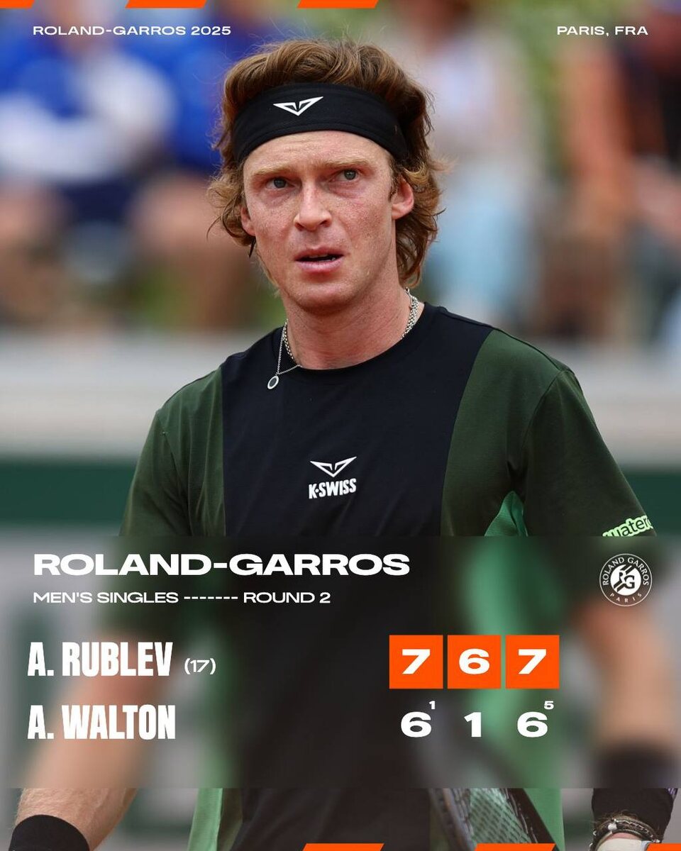 😍 Андрей Рублёв вышел в третий круг «Ролан Гаррос»!