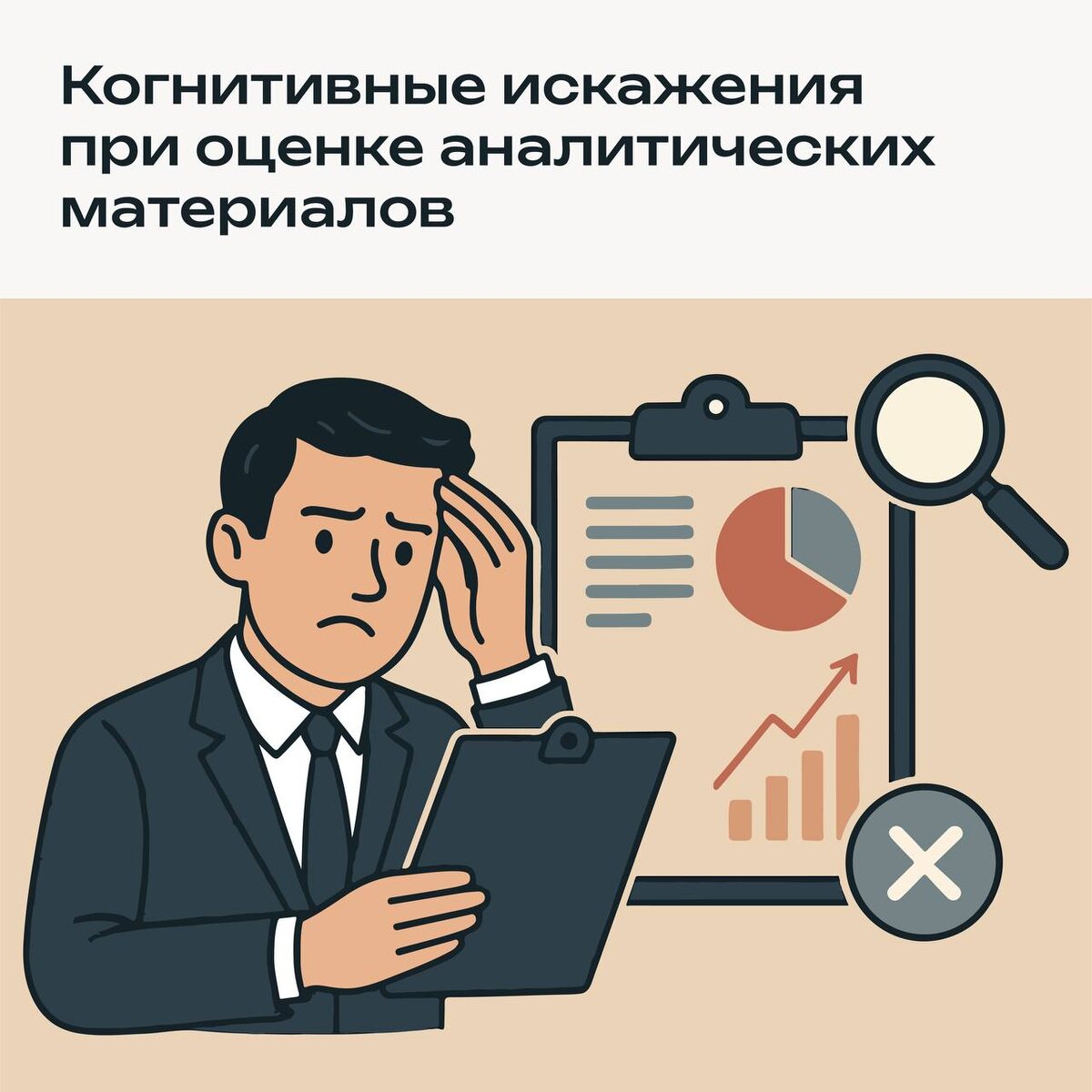 Когнитивные искажения при оценке аналитических материалов 🧠 Это третий пост в рубрике #отчет_ловушка , где мы разбираем, как отличить качественную аналитику от «пустышки». Помимо визуальных ловушек, существует более глубокая проблема — когнитивные искажения, которые влияют на восприятие информации. Даже качественные данные могут быть искажены нашим мышлением, особенно в условиях неопределённости, новизны и дефицита времени. 🤔 Какие искажения мешают объективной оценке? 🔹 Эффект ореола (halo effect) Одно яркое положительное впечатление (красивый отчёт, харизматичный спикер) может заставить недооценивать слабые стороны проекта. Что делать? Сознательно искать недостатки после первого впечатления. 🔹 Предвзятость подтверждения (confirmation bias) Мы склонны замечать только то, что подтверждает наши убеждения, игнорируя противоположные данные. Что делать? Искать контраргументы, привлекать независимых экспертов, анализировать альтернативные сценарии. 🔹 Чрезмерная уверенность (over