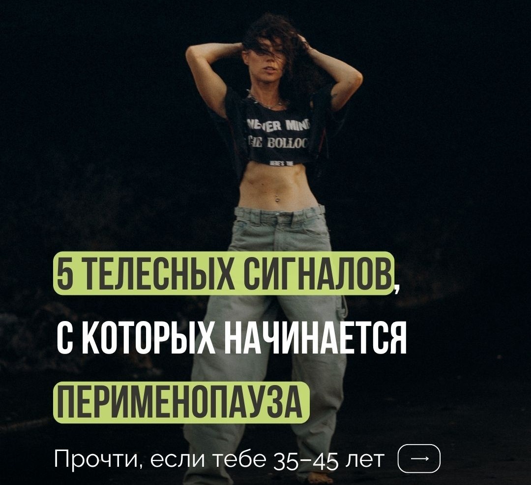 Если вы примерно моего возраста (мне 42) и думаете, что менопауза ещё далеко (в среднем — 51–52 года), то это не так. Гормональные перестройки, ведущие к остановке цикла, начинаются задолго до самой менопаузы — за 5–7, а то и 10 лет. Этот этап и есть ПЕРИменопауза. Важно знать, что нас ждёт, и заранее «подстелить соломку» — чтобы гормональные колебания не разрушили здоровье, фигуру и психику. Примерно к 30 годам наше тело достигает пика — и гормонального, и физического. После начинается постепенный спад, который влияет на все системы организма. И уже с 40 лет могут появляться первые сигналы перименопаузы. 1. Меняется КОМПОЗИЦИЯ тела Из-за снижения эстрогена уменьшается мышечная масса, а жировая — растёт. Даже при тех же тренировках и питании — тело меняется, и не в лучшую сторону. Эстроген раньше поддерживал силу и рост мышц. Когда его меньше — мышцы восстанавливаются хуже, работают слабее, от привычных нагрузок результата больше нет Также из-за снижения эстрогена снижается чувствитель