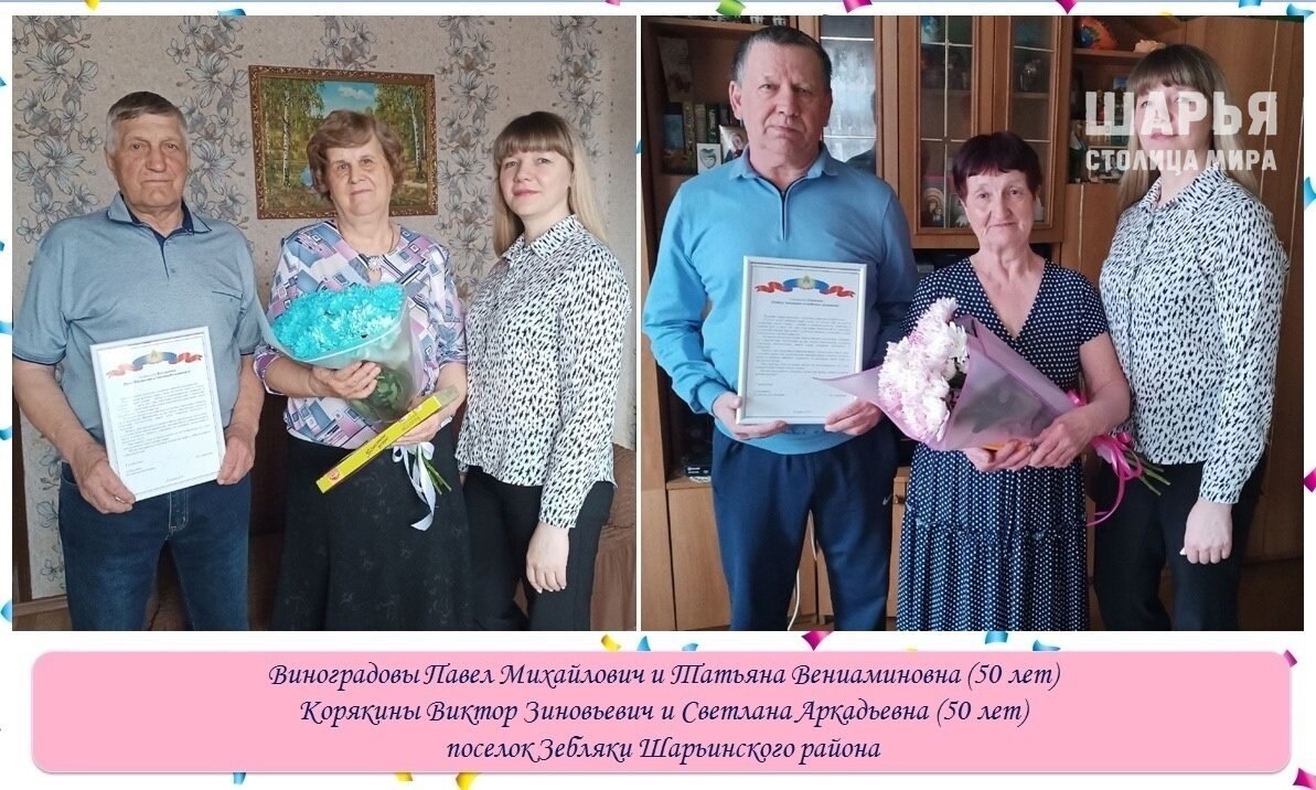 Золотая свадьба - повод получать поздравления "Счастливая семья - это не просто отсутствие трудностей, это умение вместе преодолевать их," - утверждают в Шарьинском отделе ЗАГС. Сотрудники ведомства продолжают поздравлять супружеские пары с юбилеем семейной жизни и вручать поздравительные адреса губернатора Костромской области. Так, в Шарье чествовали семью Запеваловых Евгения Александровича и Валентины Александровны, а в Зебляках Шарьинского района - Виноградовых Павла Михайловича и Татьяны Вениаминовны и Корякиных Виктора Зиновьевича и Светланы Аркадьевны. Все три супружеские пары отметили Золотую свадьбу, проживу вместе 50 лет. Поздравляем! Шарья – столица мира Крупнейшее городское СМИ Источник