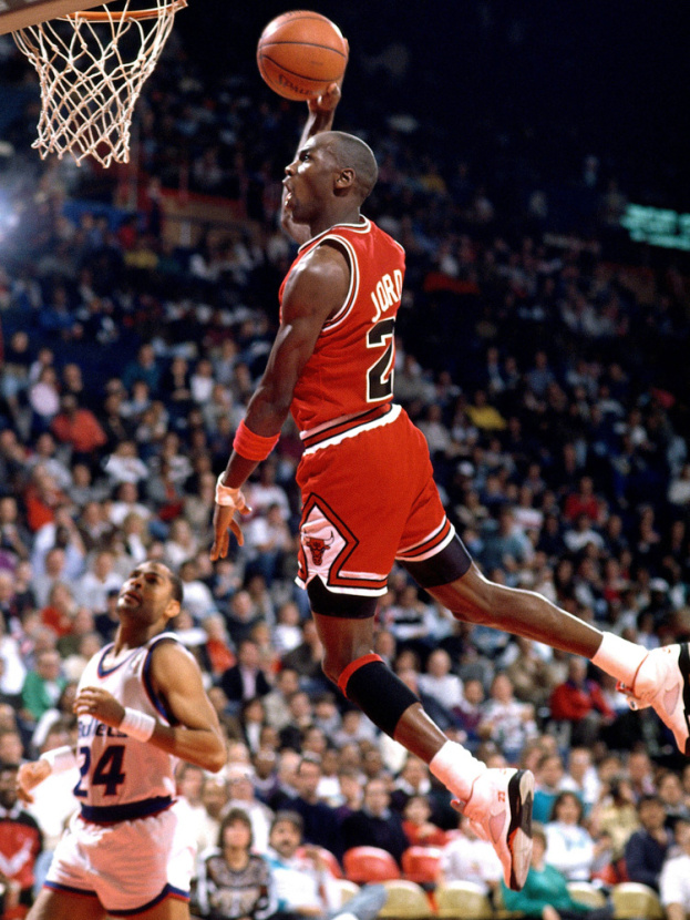 Майкл Джордан, часто называемый "Его Воздушество", считается одним из величайших баскетболистов всех времен. За свою карьеру он выиграл шесть чемпионских титулов НБА (1991, 1992, 1993, 1996, 1997, 1998) и был признан MVP (самый ценный игрок) регулярного сезона НБА пять раз. Его невероятные прыжки, скорость и мастерство владения мячом сделали его легендой.