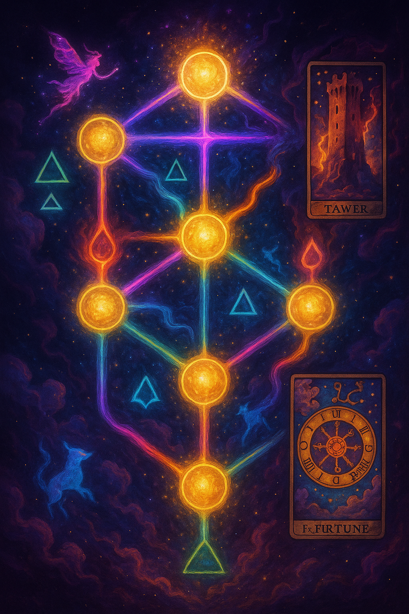 Мир Таро и Каббалы — как два загадочных зеркала, отражающих глубины нашей души. Они живут своей жизнью, но переплетаются столь тонко, что вместе создают один из самых мощных инструментов для самопознания и трансформации. Сегодня поговорим о том, как устроено Древо Жизни, как с ним связано Таро и как использовать это знание на практике. Древо Жизни (Etz Chaim) — ключевая концепция в еврейской мистической традиции Каббалы. Оно представляет собой карту мироздания и души человека одновременно. Это не просто символ, а структура, состоящая из 10 Сефир (сфер) и 22 Пути, соединяющих их. Каждая Сефира — это аспект божественного, а каждый Путь — движение энергии, переход, опыт. Сефиры располагаются в форме древовидной диаграммы. Вот кратко, что они символизируют: Здесь и начинается магия соединения. В Каббале 22 Пути, соединяющие Сефиры, ассоциированы с 22 буквами еврейского алфавита — и с 22 Старшими Арканами Таро. То есть каждый Аркан соответствует определённому Пути на Древе Жизни. Например: