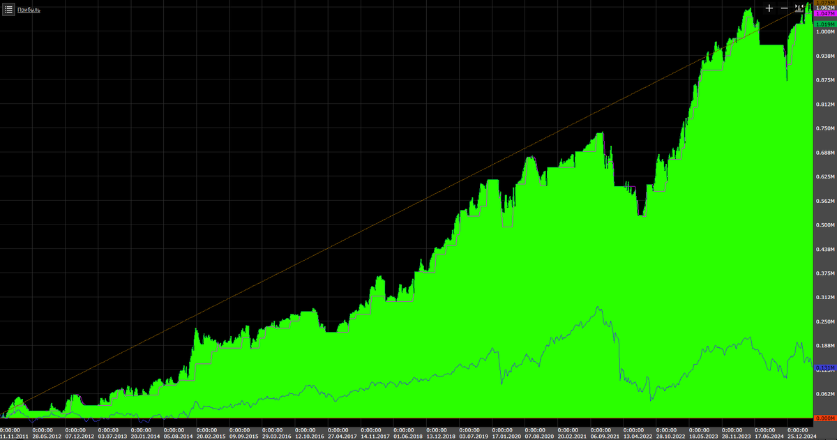 Зеленая линия баланс средств - без плеча. Скрипт для ознакомления доступен в телеграм канале https://t.me/investingprofi/40