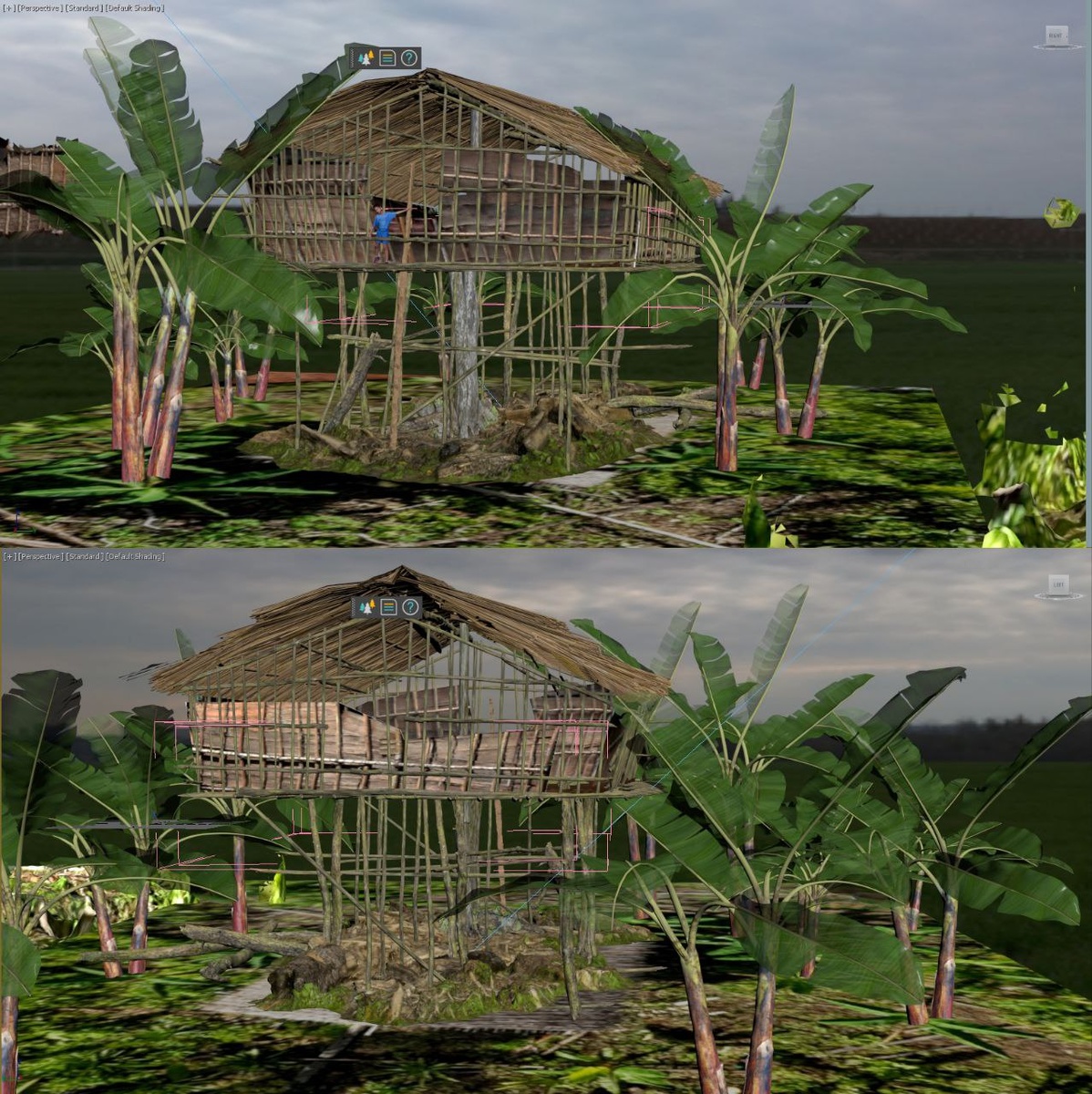 Создание 3D тура: Фотограмметрия, нейросети или трехмерное моделирование? Сегодня показываю сложный случай для трехмерной графики - хижина короваев, расположенная на деревьях в джунглях на высоте 6-8 метров над землей. Получить полный обзор и сделать снимки на равном промежутке со всех сторон, как этого требует техника выполнения фотограмметрии, не удалось. Обзору мешает дикий лес и высота. Крышу возможно увидеть только с помощью дрона - и качество снимков, нарезанных из видео, слишком низкое для модели. Данных, полученных в поле, недостаточно для полноценной фотограмметрии. Что же делать? Очевидный вариант для того, что бы все таки получить модель - нейросети. AI может с высокой вероятностью предсказать недостающие части, если обучен на большом количестве аналогичных кейсов. Но таких кейсов нет! Короваи - чревычайно закрытое племя, и эта сьемка - единственная в мире. Остается последний, чревычайно трудоемкий, но верный способ. Специалист вручную реконструирует форму в 3д, орие