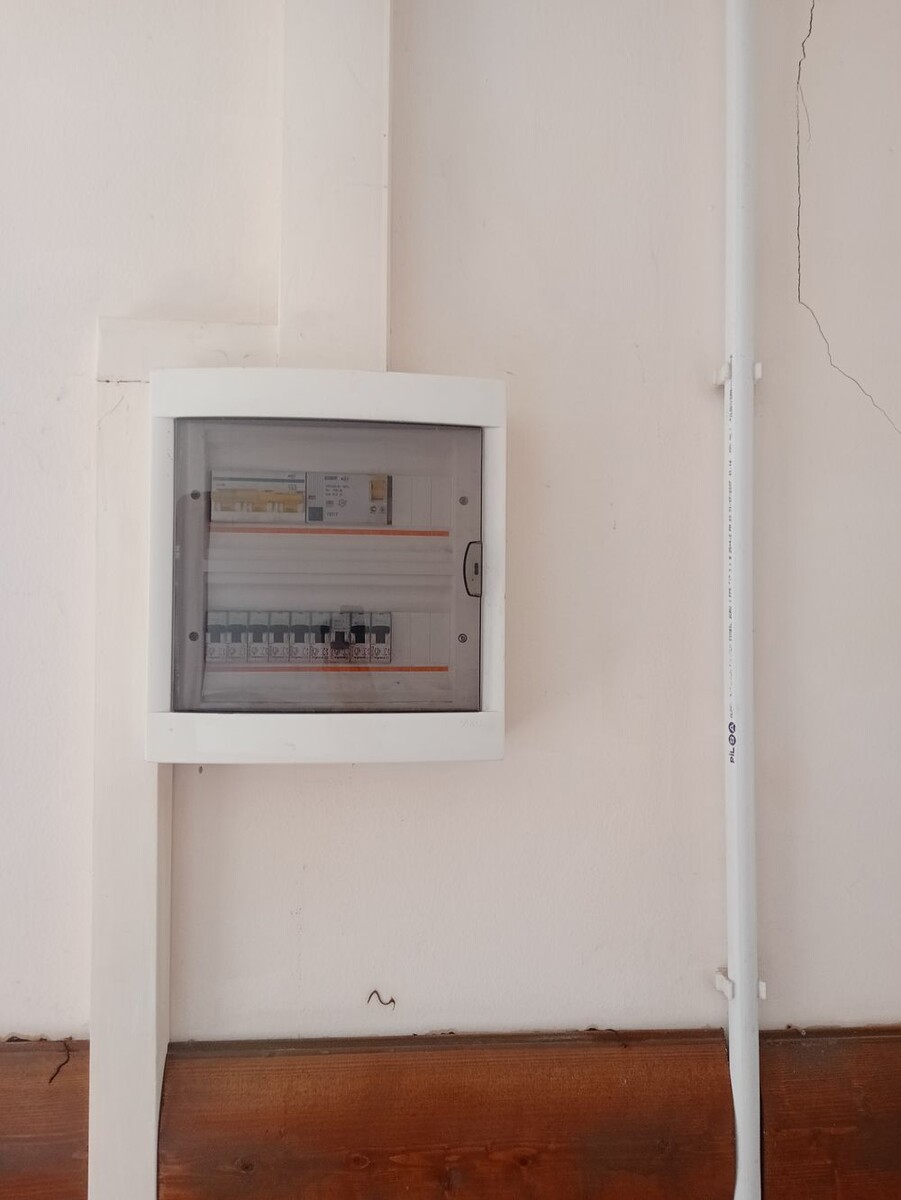 Обратились ко мне с просьбой собрать узел учёта на вводе в здание. Если честно браться особого желание не было. С первого взгляда вроде обычный щит и ничего сложного в том, чтобы поставить счётчик нет. Но вот если заглянуть во внутрь. То впору выставлять с большой такой надписью КАК НЕ НАДО СОБИРАТЬ ЩИТЫ. По моему тут собрались вместе все ошибки какие только можно. Расписывать их не буду. По хорошему конечно переделать весь щит. Но задача была только установить счётчик. Счётчик установил справа, хотя нормативам слишком близко к трубе, впрочем как и сам щиток. Приходящие и отходящие линии пустил в гофре. С клипсами чуток тупанул, надо было на одном уровне делать. Для лучшего контакта при подключении счётчиков всегда одеваю по 2 НШВИ, предварительно у одной сняв юбку. Маркировка для удобства монтажа и обслуживания. Ноль заведён отводом, для счётчика не обязательно нулевую линию через него пропускать. Проход в щит просверлил ступенчатым сверлом. Подключить уходящую линию оказалось самым