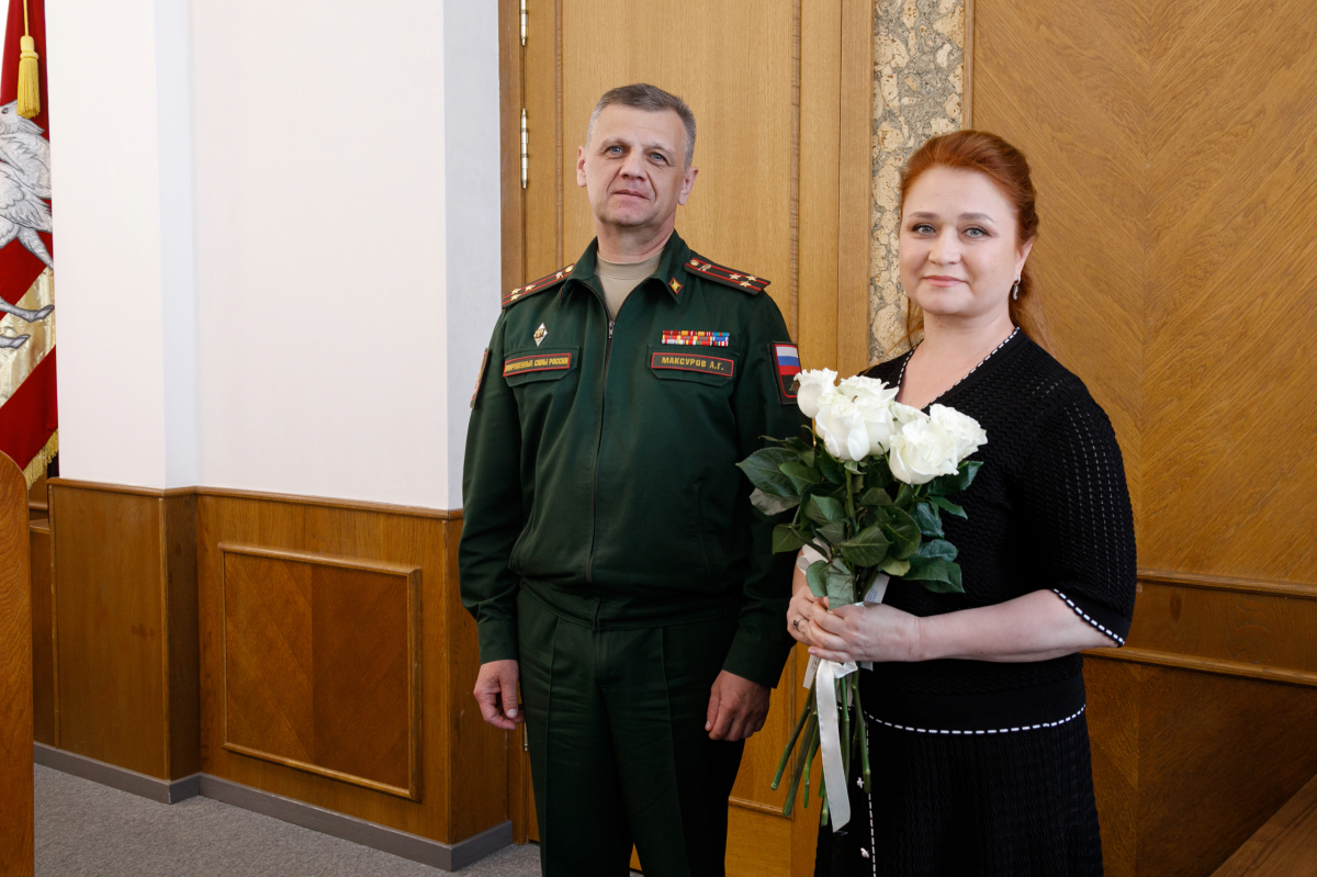 Военный комиссар Челябинской области Андрей Максуров вручил депутату Заксобрания Лене Колесниковой удостоверение ветерана боевых действий. Торжественная церемония состоялась в начале 66-го заседания регионального парламента.