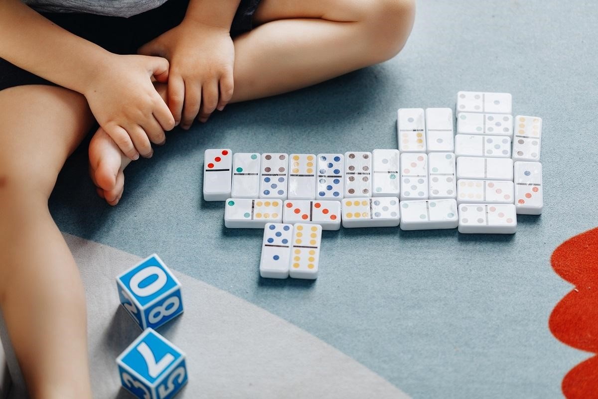 Домино пришло к нам из Китая. За свою историю, которая насчитывает почти тысячу лет, игра много раз менялась. Существуют десятки правил и вариаций для взрослых. Но еще больше разновидностей игры придумано для детей. В дошкольном домино используется классический принцип подбора костяшек с совпадающими частями, но на фишки, вместо привычных точек, могут быть нанесены любые изображения. Например, предметы, животные, буквы, цифры, цветные геометрические фигуры и т. д. Такой подход позволяет познакомить с правилами игры тех малышей, которые еще не овладели навыками счета. Одно из необычных вариаций — это «Сенсорное домино». Набор предназначен для детей от 3 лет. С его помощью можно организовать игровую деятельность и познакомить ребенка с различными фактурами, развивая тактильные ощущения. Что входит в набор В наборе вы найдете фишки для игры (28 шт.) и мешочек из ткани для их хранения. Материал костяшек — дерево. Поверхность разделена на две части, каждая — со своим покрытием (картон, плас