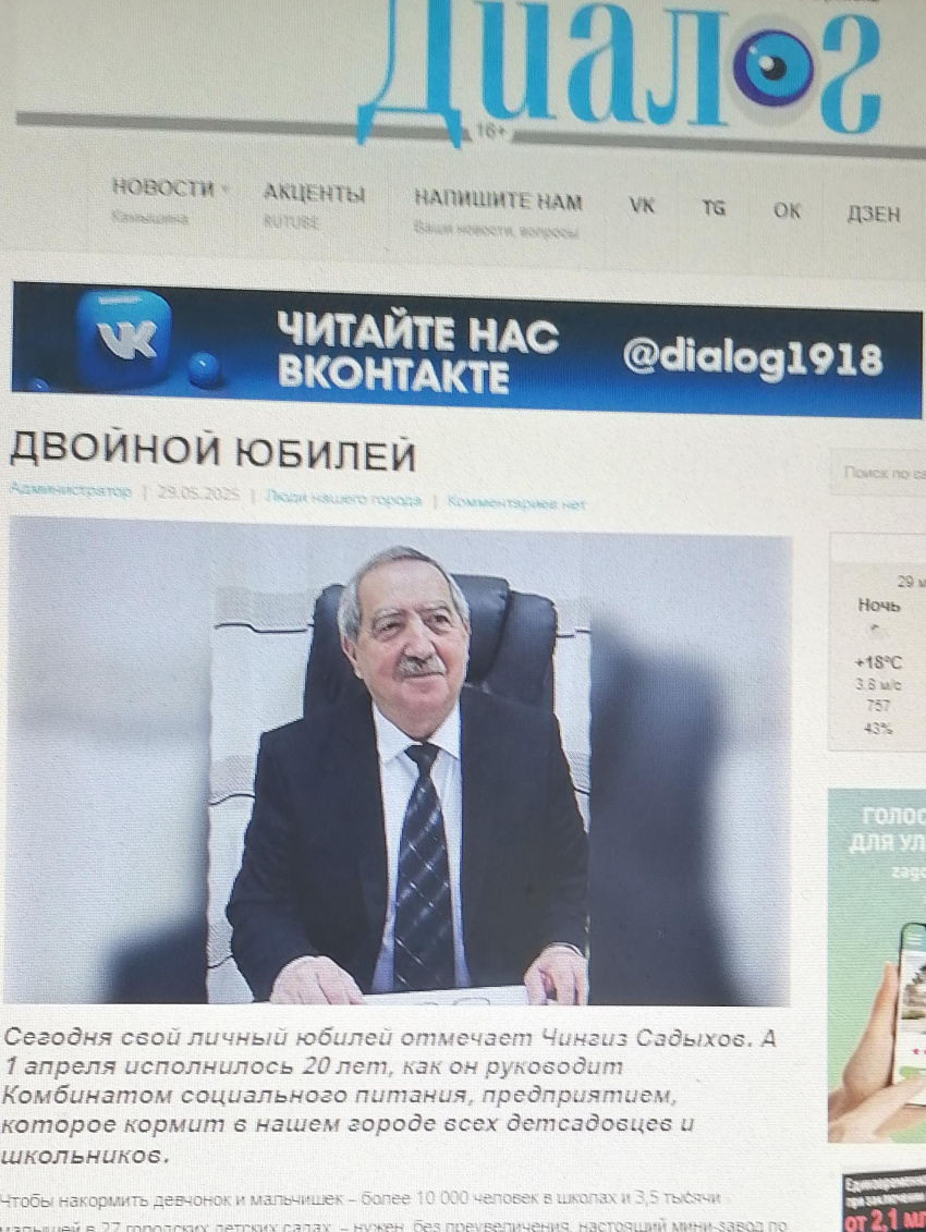 Административная газета Камышина «Диалог» помпезно празднует юбилей директора комбината, который жестко критикуют камышане