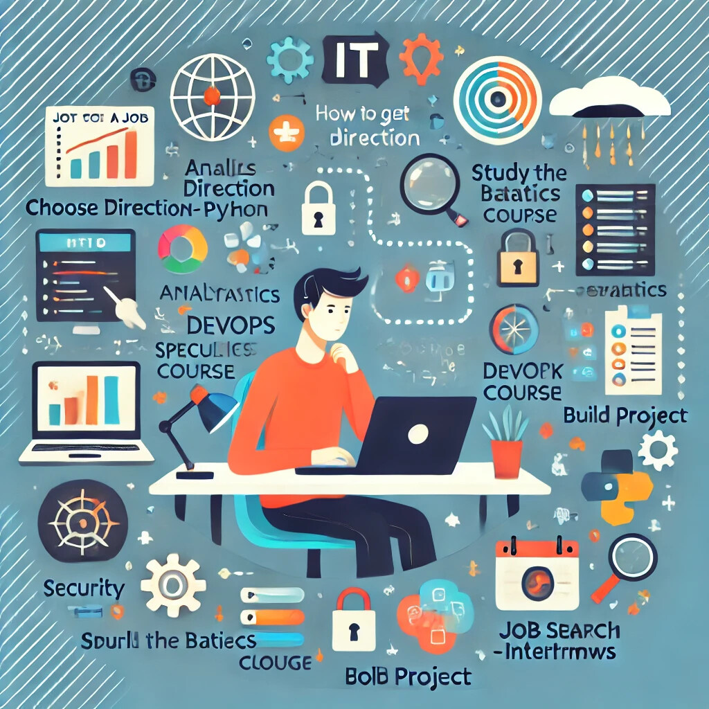 Простой и понятный план из 8 шагов: от выбора направления до первого оффера. Подходит для людей без айти образования 25–45+. Если есть желание и хотя бы 10–15 часов в неделю! Следуй шаг за шагом — и ты сможешь выйти на свою первую работу по айти специальности! Шаг 1. Выбери своё направление в ИТ Цель: понять, какая профессия тебе ближе · Ознакомься с направлениями: аналитик, тестировщик, DevOps, Web, Android, инфобез и др. · Посмотри вводные вебинары и общие лекции · Оцени: что тебе ближе — код, процессы, логика, визуал, мобильные технологии и т.д. Результат: выбрано направление развития (например, тестировщик или веб-разработчик) Шаг 2. Изучи рынок: куда реально можно попасть новичку Цель: увидеть реальные точки входа · Составь список компаний, которые берут стажёров и джунов по твоему направлению · Изучи вакансии на hh.ru, Habr Career · Обрати внимание: какие технологии чаще всего требуют, какие проекты делают Результат: у тебя есть список 10–20 компаний и понимание, что учить под ко