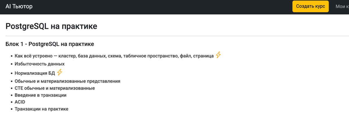 Надоело покупать десятки онлайн-курсов? Можно сэкономить и создать эти самые курсы с помощью AI. Просто загрузи программу интересующего тебя курса, а сервис генерирует контент, задачи, а так же поможет с ответами на возникающие вопросы