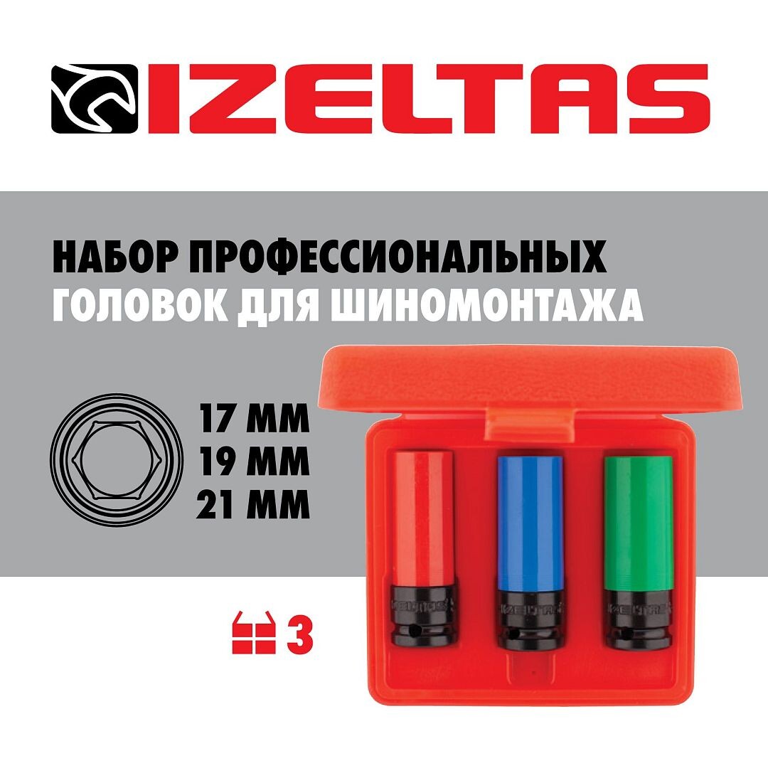 Представляем вашему вниманию профессиональный инструмент для шиномонтажа и не только: набор ударных шестигранных головок 1/2" IZELTAS. 🔹 Особенности набора: