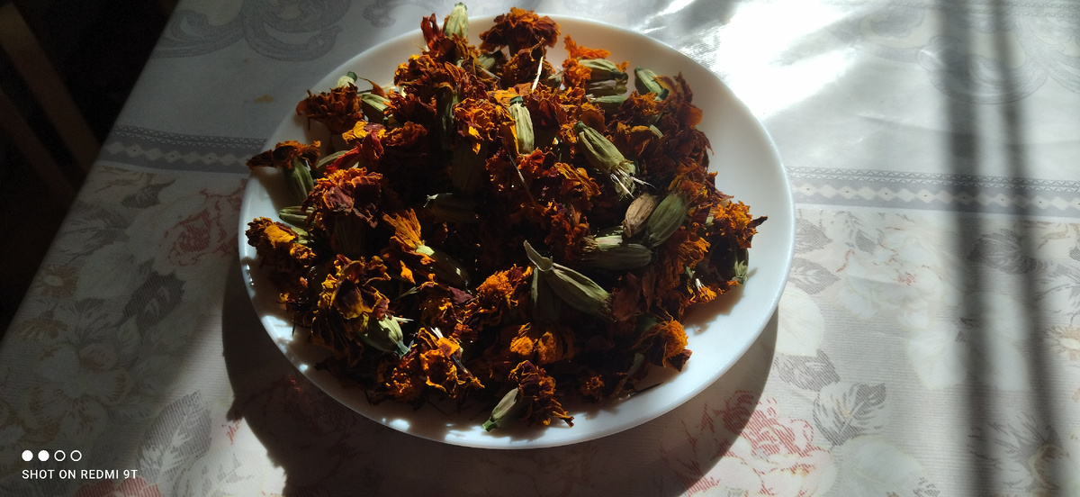 Я готовлю из отвара бархатцев ледовые кубики, которые лежат в морозилке. Отлично тонизирует кожу!