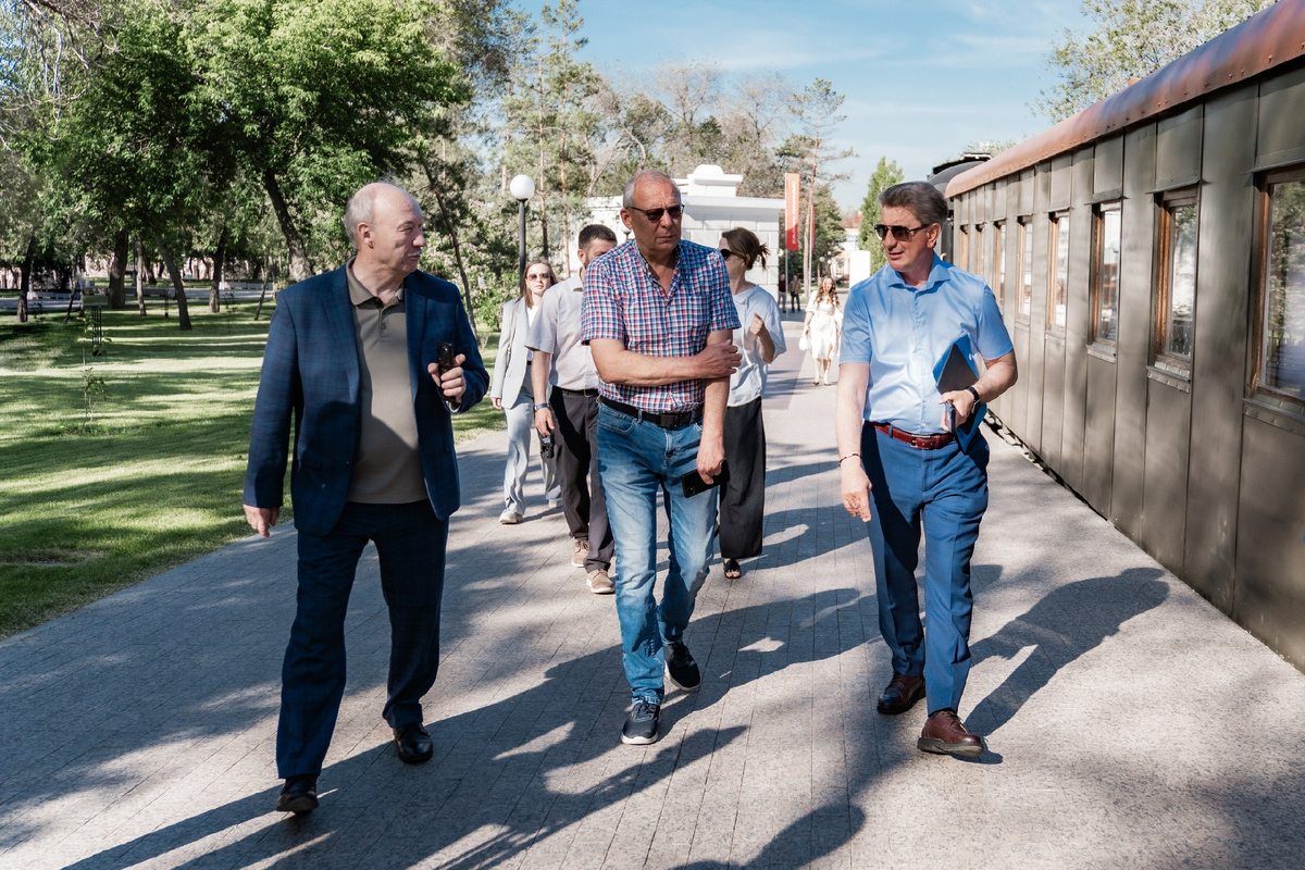 – 6 мая исполнилось 20 лет с момента открытия выставочного комплекса «Салют, Победа!». Общество «Газпром добыча Оренбург» – одна из организаций, которая участвовала в его создании, – отметил Александр Ушаков. – Тогда газодобытчики помогли с транспортировкой сложных объектов – многотонного паровоза, что «тянет» за собой киновагон, в котором мы сейчас находимся, и корпуса баллистической ракеты, всегда вызывающей живой интерес у посетителей. Коллекцию нашего музея также пополнят фотографии, которые передали газодобытчики, наши партнеры и друзья. В 2023-2024 году они помогли в реализации одного из самых сложных проектов – в создании ретрокопии бронепаровоза. Торжественное открытие состоялось совсем недавно. Этот экспонат уникален: такая техника есть всего в нескольких городах страны. Скептики утверждали, что у нас ничего не получится. Но при поддержке предприятий области, в том числе и «Газпром добыча Оренбург», мы смогли собрать и установить бронепаровоз «Оренбургский железнодорожник». Еще благодаря газодобытчикам за последние четыре года поставлены на ход самоходно-артиллерийская установка ИСУ-152, «трехтонка» (грузовик ЗИС-5) и знаменитый танк Т-34. Мы очень рады сотрудничеству. 9 Мая – это народный праздник. И наш комплекс «Салют, Победа!» является народным.