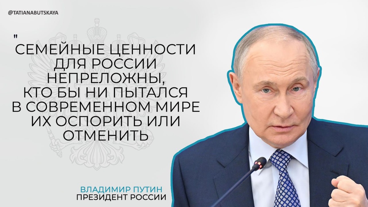 ❗️Об этом глава государства сказал на встрече с семьями, награждёнными орденом «Родительская слава», матерями, удостоенными почётного звания «Мать-героиня», и членами их семей. Мероприятие проводится в преддверии Международного дня защиты детей. «Такие крепкие дружные семьи, как ваши, были и будут оплотом, гордостью нашей страны. А подлинные семейные ценности для нас, для России и её граждан, остаются непреложными, как бы кто не пытался в современном мире их оспорить или отменить», — подчеркнул Владимир Путин.