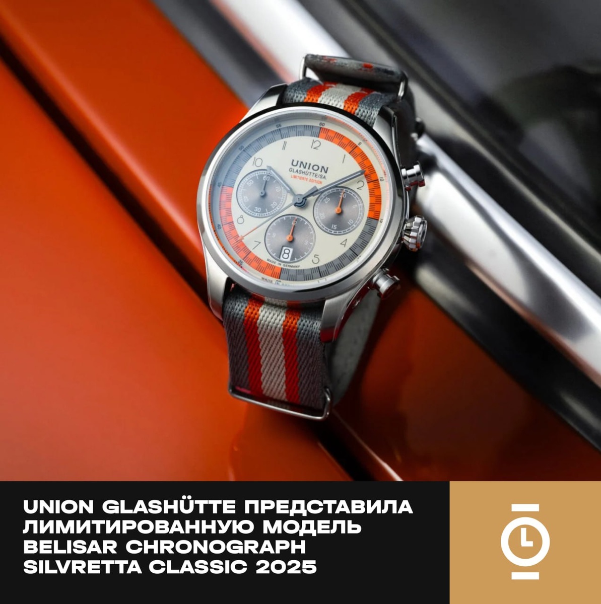 UNION GLASHÜTTE ПРЕДСТАВИЛА ЛИМИТИРОВАННУЮ МОДЕЛЬ BELISAR CHRONOGRAPH SILVRETTA CLASSIC 2025 #новость_WD В честь ралли классических автомобилей Silvretta Classic немецкая мануфактура Union Glashütte выпустила ограниченную серию хронографа Belisar. Новинка выделяется корпусом из стали 316L диаметром 44 мм, бежевым циферблатом с оранжево-серым минутным кольцом и стрелками с Super-LumiNova. Модель оснащена автоматическим калибром UNG-27.S1 на базе Valjoux 7750 с кремниевой пружиной баланса, запасом хода 65 часов и фирменной отделкой Glashütte. Водонепроницаемость — 100 метров. Часы поставляются с тремя сменными ремешками — стальным браслетом, кожаным и текстильным NATO. Всего выпущено 200 экземпляров по цене 3 450 евро. 🔶 Переходи в чат, выскажи свое мнение! 🔶 Модератор 🔶 Watches Digest Market