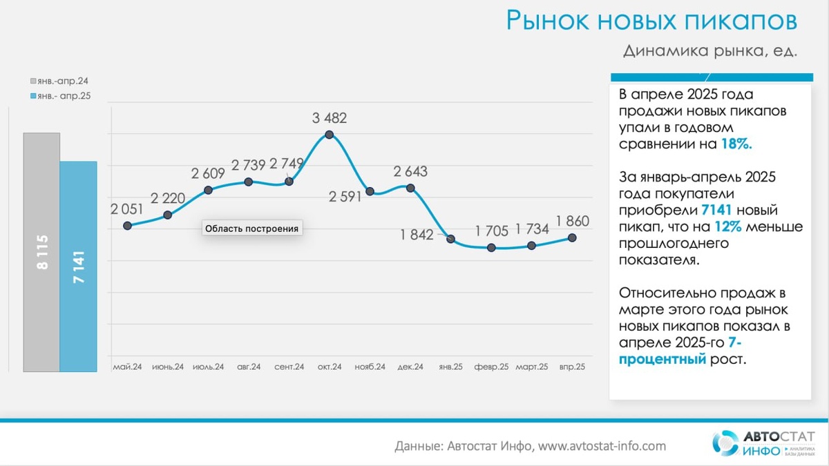 Рынок пикапов показывает рост в помесячной динамике, но отстает от прошлогодних значений