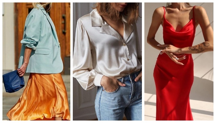 Чтобы создавать великолепные повседневные и праздничные образы, гардероб женщины должен быть разнообразным. Давайте рассмотрим несколько атласных вещей, которые могут заинтересовать современных поклонниц моды. Например, макси платье для вечернего выхода на тонких бретелях с глубоким декольте и высоким разрезом — идеальный наряд, который подчеркнёт изящество обладательницы. К такому наряду отлично подойдут тонкие многослойные цепочки и сумка, украшенная жемчугом. Каждая поклонница моды сможет создать неповторимый вечерний образ с помощью роскошного платья макси из атласа, выполненного в духе викторианской эпохи. Атласное платье в бельевом стиле — это тренд, который уже не первый сезон занимает лидирующие позиции. Летом этот наряд будет смотреться уместно, как в курортных, так и городских аутфитах. Также стилисты советуют обратить внимание в этом году на ультрамодные миди и макси юбки из атласа в пастельных оттенках. Эту шикарную базу можно комбинировать с лонгсливами, водолазками, рубаш
