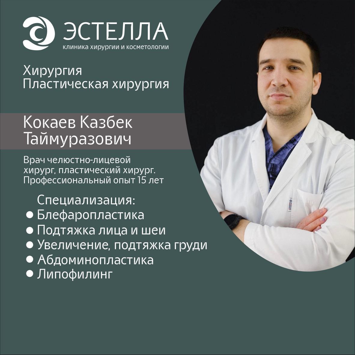 ☀️Открыта запись на приём к врачу челюстно-лицевому хирургу, пластическому хирургу Казбеку Таймуразовичу Кокаеву. ➡️ В клинике хирургии и косметологии "Эстелла" врач выполняет следующие виды операций: 🔹 Блефаропластику, 🔹 Подтяжку лица и шеи, 🔹 Увеличение, уменьшение и подтяжку груди, 🔹 Абдоминопластику, 🔹 Липофилинг. Запись на консультацию 👇🏼 📱 8-918-096-36-36 ☎️ +7 (909) 447 85 07 📍ул. Красных Партизан, 28 (ост.Каляева)