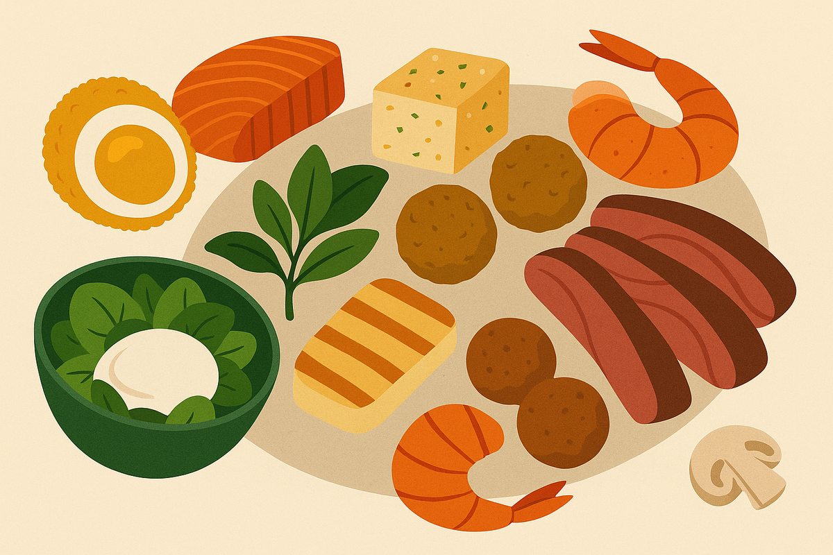Вы когда-нибудь замечали, что салат вроде вкусный, но после него всё ещё хочется есть? Решение простое: хороший слой белка — и ваш зелёный микс превращается из гарнира в полноценное блюдо. Ниже 10 моих рабочих приёмов без супер сложных техник. 1. Поджарьте лосось-татаки Нарежьте филе на тонкие ломтики, быстро обжарьте их на сильном огне или опалите горелкой, а затем замаринуйте на минуту в смеси соевого соуса, рисового уксуса и мёда. 2. Замаринуйте курицу в йогурте Залейте грудку натуральным йогуртом с лимонным соком, чесноком и паприкой, подержите пару часов в холодильнике, а потом запекайте или обжарьте до золотистого цвета. 3. Приготовьте хрустящий тофу Нарежьте прессованный тофу кубиками, обваляйте в кукурузном крахмале, обжарьте до хруста и в самом конце сбрызните мирином и соевым соусом. 4. Добавьте птицу с апельсином Если перед этим вы запекали любую птицу (идеально в технике конфи), то порвите мясо с ножки вилкой и смешайте с тёртой апельсиновой цедрой и щепоткой соли. 5. Обжар