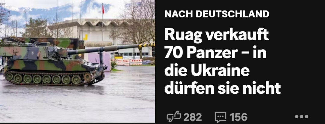 π " Ruag ΠΌΠΎΠΆΠ΅Ρ ΠΏΡΠΎΠ΄Π°ΡΡ Π±ΠΎΠ΅Π²ΡΠ΅ ΡΠ°Π½ΠΊΠΈ Leopard 1 Π² ΠΠ΅ΡΠΌΠ°Π½ΠΈΡ Π±Π΅Π· ΡΠ°Π·ΡΠ΅ΡΠ΅Π½ΠΈΡ. ΠΠ΅ΡΠ΅ΠΏΡΠΎΠ΄Π°ΠΆΠ° Π£ΠΊΡΠ°ΠΈΠ½Π΅ ΠΈΡΠΊΠ»ΡΡΠ΅Π½Π° ΠΈΠ· ΠΊΠΎΠ½ΡΡΠ°ΠΊΡΠ°. Π ΡΠ°ΡΠΏΠΎΡΡΠΆΠ΅Π½ΠΈΠΈ Ruag Π½Π°Ρ