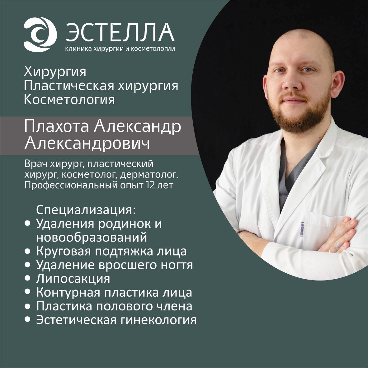☀️Открыта запись на приём к врачу хирургу, пластическому хирургу, косметологу, дерматологу Александру Александровичу Плахота. ➡️ В клинике хирургии и косметологии "Эстелла" врач выполняет следующие виды медицинских услуг: 🔹 Удаление родинок и новообразований, 🔹 Липосакцию, 🔹 Контурную пластику лица, 🔹 Пластику полового члена, 🔹 Эстетическую гинекологию. Запись на консультацию 👇🏼 📱 8-918-096-36-36 ☎️ +7 (909) 447 85 07 📍ул. Красных Партизан, 28 (ост.Каляева)