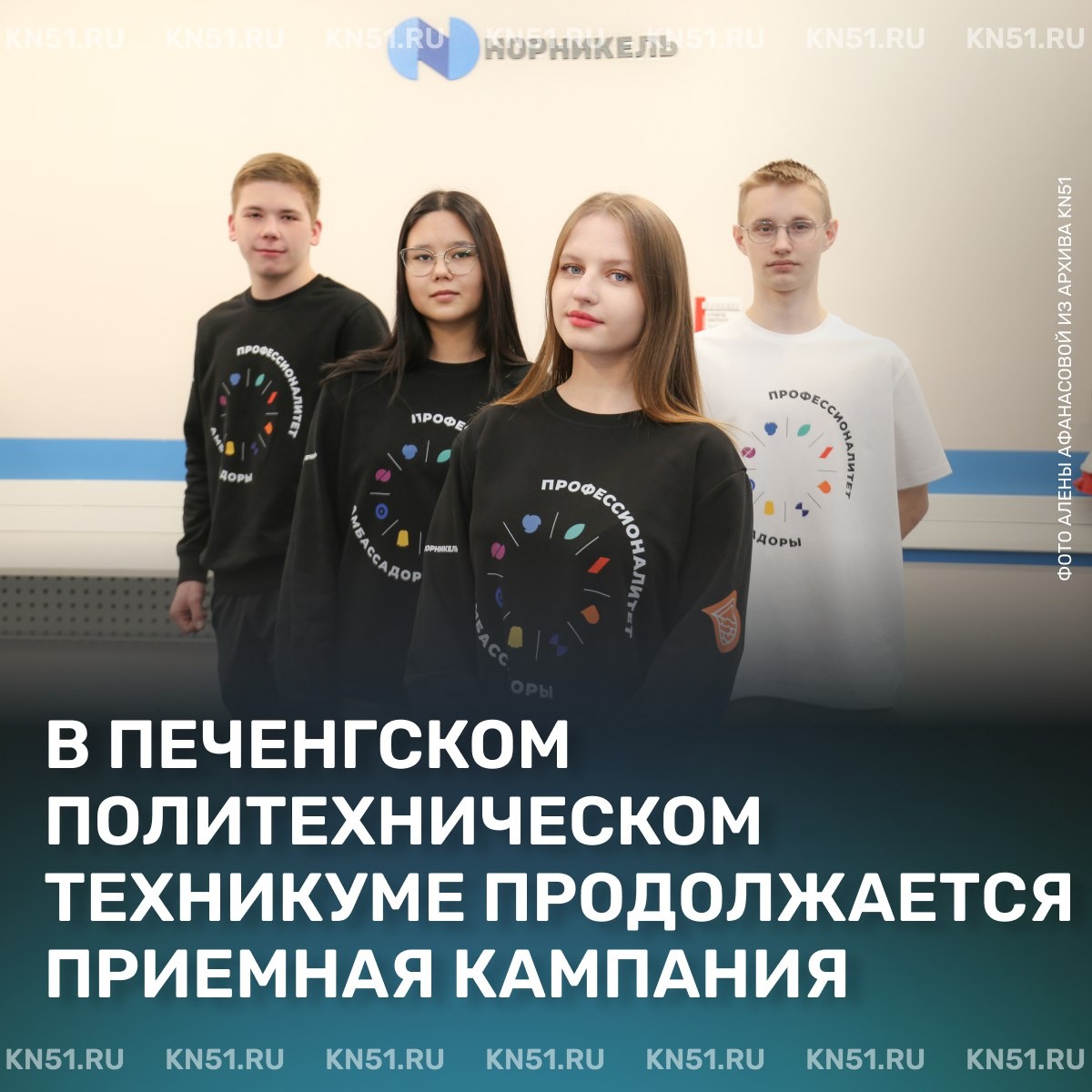 👋 По федеральному проекту «Профессионалитет» Печенгский политех ведет набор абитуриентов на бюджетные места по двум специальностям С марта Печенгский политехнический техникум начал приемную кампанию на 2025-2026 учебный год. Учебное заведение продолжает участвовать в федеральном проекте «Профессионалитет» нацпроекта «Молодежь и дети». В этот раз техникум набирает выпускников 9 классов по направлениям «Подземная разработка месторождений полезных ископаемых» и «Эксплуатация и обслуживание электрического и электромеханического оборудования (по отраслям)». ➡ Подробнее kn51.ru/2025/05/29/v-pechengskom-politehnicheskom-tehnikume-prodolzhaetsya-priemnaya-kampaniya