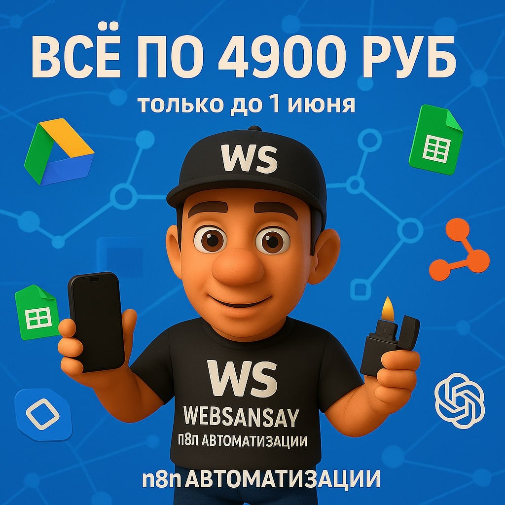 😍 НАС УЖЕ 500 - ДЕРЖИТЕ СИМВОЛИЧЕСКУЮ ПЛЮШКУ! 🔥 ВСЁ ПО 4900 РУБ — ДОСТУП НАВСЕГДА Только до 1 июня 💡 Упростил запуск автоматизаций до одного клика. Собрал готовые шаблоны n8n, которые можно просто загрузить — и всё работает. 📦 Доступны шаблоны: — 📲 RSS → Telegram автопостинг — https://t.me/tribute/app?startapp=ssBL — 🧠 Генерация видео с AI-аватаром — https://t.me/tribute/app?startapp=ssBP 🎁 Каждый шаблон: — уже настроен — проверен на практике — с инструкцией — с доступом к чату и обновлениям 💸 Цена любого шаблона — 4900 руб С 1 июня цена вырастет. А точнее будет по подписке. 🚀 ХОЧЕШЬ НАУЧИТЬСЯ СОЗДАВАТЬ АВТОМАТИЗАЦИИ САМ? Запустил пошаговое обучение по n8n: — от простого к сложному — без воды — на реальных бизнес-сценариях 🔐 Доступ по подписке: 990 руб в месяц 📲 Вход по ссылке: https://t.me/tribute/app?startapp=sv8z Внутри — уроки, поддержка, чат, готовые примеры. Постоянные обновления. 📩 Вопросы? Пиши в ЛС 👉 @WebSansay ⏳ Не тяни — успей до 1 июня. Потом будет до
