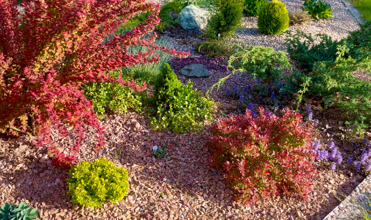 В рокарии еще растут два барбариса Тунберга из серии "Рокет"