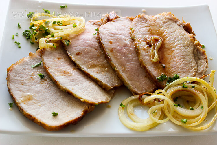 Как приготовить свиную корейку, чтобы была сочной? Сохраняйте рецепт! Сегодня будем готовить очень вкусное блюдо из печеной свинины (целиком, то есть без разделки на куски). Свиную корейку сначала быстро обжарим, чтобы «запечатать» внутри все соки, а затем запечем в духовке, постоянно поливая жиром и луковым соусом. Если мясо не пересушить, то вы получите, как говорят повара, «чистый мясной вкус», без лишних маринадов и приправ, просто отменное жаркое, нежное и полное соков. Свиную корейку можно взять на косточке или без (на косточке предпочтительнее). Мясо обмыть, обсушить, обсыпать солью и перцем, втереть со всех сторон. Оставить при комнатной температуре на 40-60 минут — обязательно, чтобы кусок прогрелся и процесс приготовления протекал равномерно по всей его площади. Обвалять мясо в муке. Обжарить на сильно разогретом жире со всех сторон. Боковины куска тоже следует обжарить, «запечатав» внутри таким образом все соки. Переложить на противень соответствующей величины (или просто о