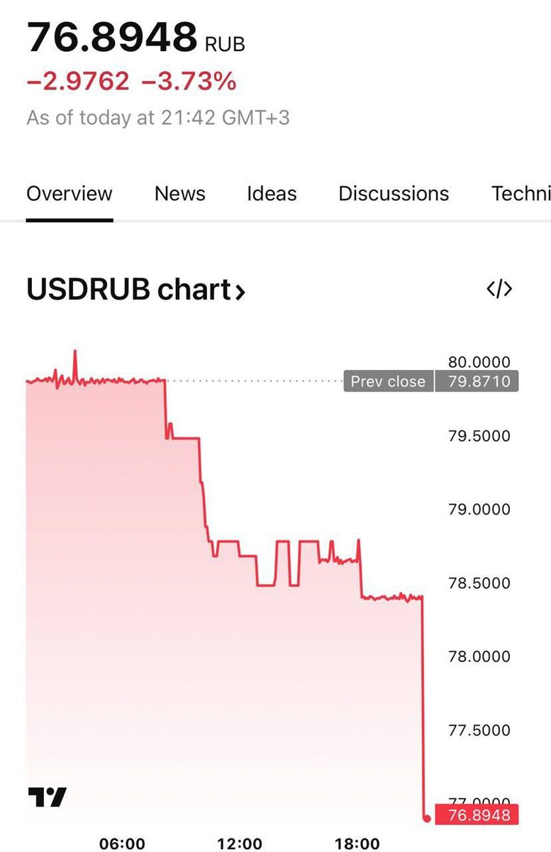 ❕Доллар на бирже рухнул до 76 рублей