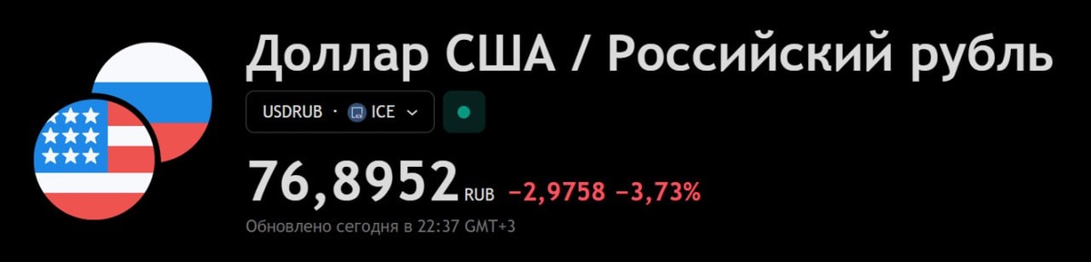 ⚡️ Доллар пошел во все тяжкие и валится на 4% всего за день Уже ниже 77 рублей. #Валюта @if_news
