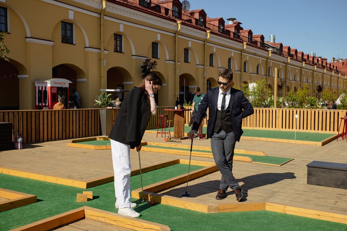 Санкт-Петербург — город с многослойной историей, утончённой архитектурой и атмосферой интеллигентного отдыха. Но если вы уже не первый раз в Северной столице и хотите открыть для себя новые впечатления, попробуйте необычное сочетание — проживание в комфортном отеле и знакомство с гольфом. Этот аристократический спорт доступен сегодня не только профессионалам, но и тем, кто хочет провести время с пользой и удовольствием. Гольф в Петербурге — это не только возможность насладиться любимым видом спорта, но и удобство его доступности. Тем, кто хочет поиграть на классических полях за городом, не составит труда добраться до гольф-клубов из центра — особенно при размещении в отеле «Театральная Площадь». А для тех, кто ценит время и предпочитает отдых без лишней суеты, отличной альтернативой станет мини-гольф прямо во дворе «Никольских рядов», где расположено самое большое мини-поле в России. Благодаря такому расположению гольфисты могут совмещать комфортное проживание и любимый спорт, не тратя