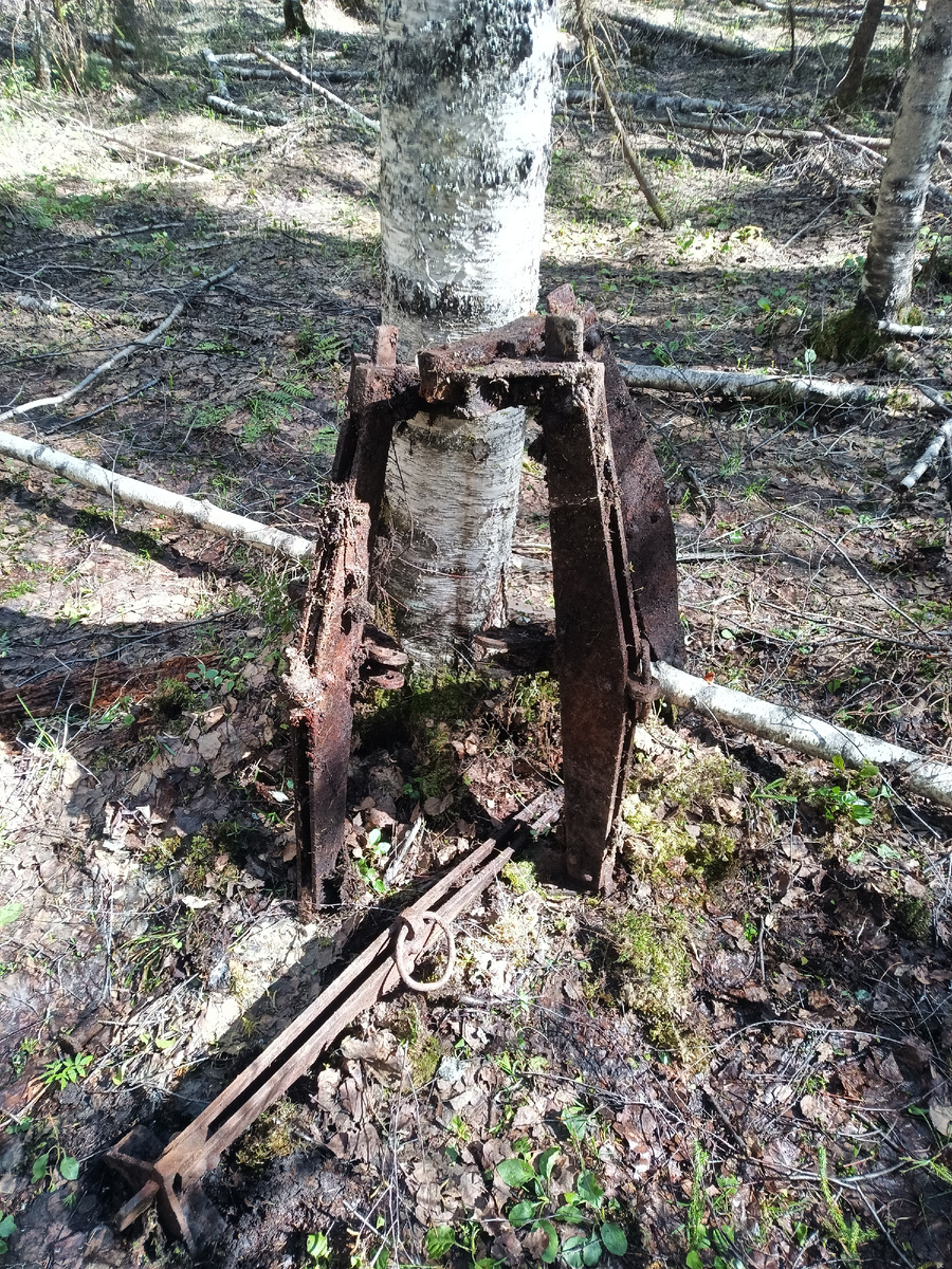 Приветствую коллектив! Ранним утром мы проснулись в заброшенной деревне. Позавтракали, вскипятили чайник, выпили чаю и отправились на поиски металла. План на сегодня был простой: собрать крупногабаритный, но не слишком тяжёлый металл — вёдра, тазы, бочки и прочую подобную утварь, разбросанную по заброшенной деревне. Вчера мы уже немного прошлись по местности, но сегодня решили основательно пройтись по деревне и её окрестностям. Земля здесь была уже изрядно исхожена, но кое-где ещё попадались интересные находки. Вот, например, наткнулись на старую ванну, наполненную бетоном. Решили попробовать её перевернуть и вытряхнуть бетон. Немного помощи от лебëтки и план сработал отлично, бетон вывалился, а ванна отправилась в нашу копилку металла. Далее мы обнаружили крупную круглую деталь, похожую на зубчатое колесо от бортового редуктора трактора. Пришлось повозиться, чтобы её вытащить, но в итоге и она оказалась в нашей тележке. Затем нашли ещё несколько тяжёлых металлических уголков, шинок и